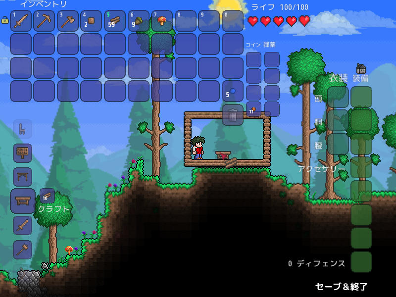 Terrariaは、クラフト系ゲームなので基本必要な物は自分で作ります。
