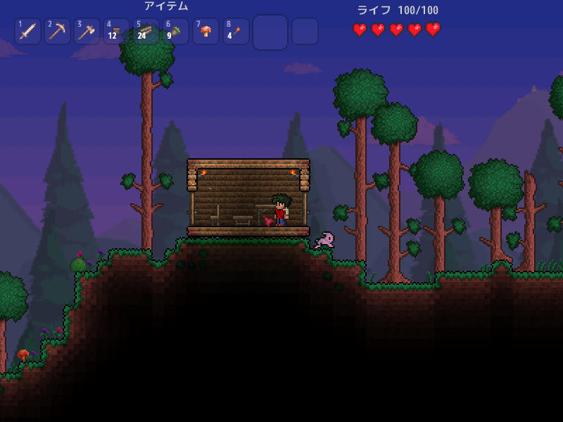 スタートで明るいうちに家を作らないと、多分その日の夜に死ねます。