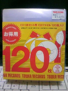 2010年1月10日 タワレコのCDソフトケース CDのプラケースが結構場所を取るので、プラケースから少しずつソフトケースに変えている。 場所を取らなくていいのだ。お徳用の120枚のがあったからドンと買ってきた!まずは会社に置いてある私物のCDから入れ替えていこう。そしたら持って帰ってくるのも楽だ。