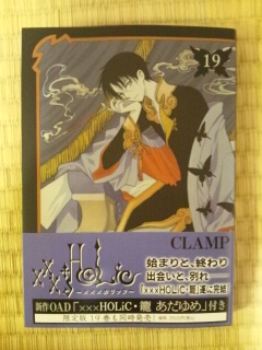 2011年3月10日 ×××HOLiC(19) ×××HOLiCもついに完結かあ。 地味に百目鬼が好きな俺なんだけど。途中から積んじゃった、読み直したい。なんか途中何冊か買っていない気もする…。引っ越してしまい込んだ当たりから…。探そう。 関係ないけど、005SH、今までのブログと同じ240×320サイズで写真撮ると、ピントがちょっとぼけたりする。あと何故かこの写真はすごく黄色くなったw。いまウチにあるデジカメの中で005SHが一番画素数が高い…。新しいデジカメがちょっと欲しいなあ…。
