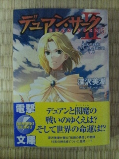 2011年3月10日 デュアン・サークII(15) 永遠の約束、それぞれの旅立ち(下) 「深沢美潮が贈る長編ファンタジーシリーズ「伝説の勇者」デュアン・サークの物語、15年の時を経て堂々の完結!!」 か、完結!そ、そろそろまとめて読むか。第一部から…。ギーッス。 最近は、吸血鬼ハンター”D”の再読に大ハマリしている俺なのだった。今、「D-北海魔行〔上〕」