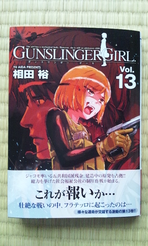 2011年4月28日 GUNSLINGER GIRL(13) ガンスリ最新刊。今回もイイ感じだった。せつない。なんかだんだんクライマックスに向かっている気配だけど。 4月にイタリア旅行に行ってきたので、何となく舞台になっている地名に聞き覚えがあったり、巻末のイタリア事情もふむふむそう言うことかと身近に感じられたりして、前にも増して楽しめた。 そして、全然関係ないけどイタリアつながりで、リストランテ・パラディーゾとかGENTEを買って読みたくなっている…。そわそわ