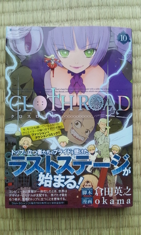 2011年5月21日 CLOTH ROAD(10) CLOTH ROAD、2月連続刊行か。そして最終第11巻かあ。 芭琴の見せた「粋」に衝撃を受ける。戦いの中で傷つく描写が半端亡いよね。絵は可愛いのに容赦ない。 まあそこも好きだけど。 地味にグスタフをはじめとする師匠とかトーガさんとか爺さんキャラが好きな俺です。 しかし才能があるにせよガーメントの自己中っぷりは実にイラッと来るわい。最後どうなるんだろうなあ。