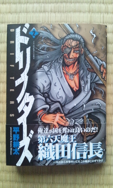 2011年10月15日 ドリフターズ(2) ドリフターズ、面白い!面白すぎるわ!読むと戮殺したくなるわ大変だ。 会社帰りに新宿のとらのあなで買ったらクリアファイルくれたよ。豊久つええ。っていうか三人とも強いけど。 なんつーかこういう感じなんだよなー。ベルセルクとか最近激戦風に見えて地味にぬるく感じる…。