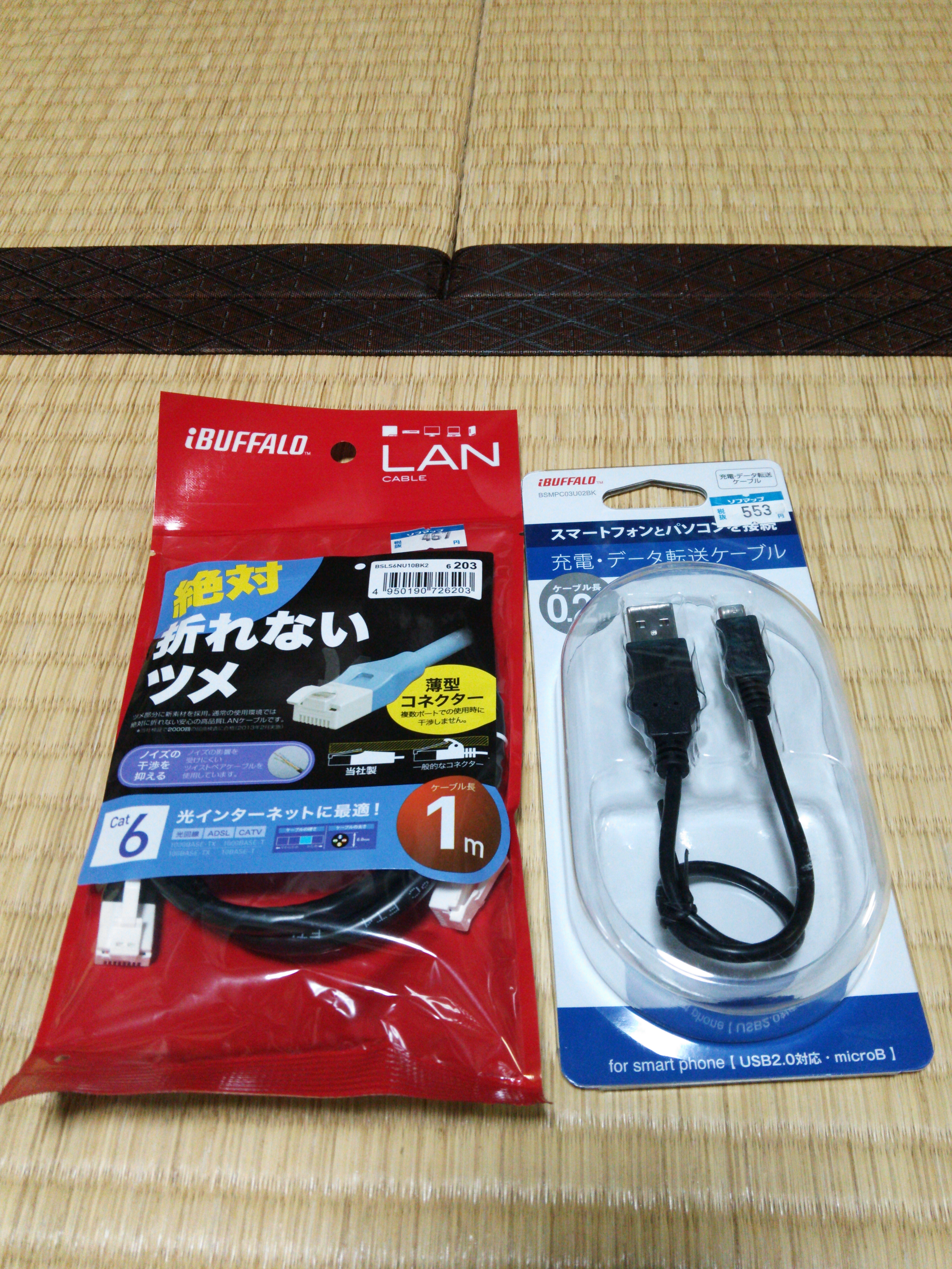 昨日、町田のソフマップに寄って電源用のUSBケーブルと短めのLANケーブルを買ってきたよ。