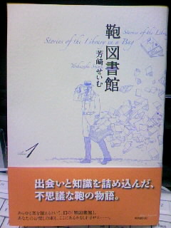 2009年11月1日 鞄図書館(1) 鞄図書館。なんだろう。金魚屋古書店的な無限書架が鞄の中にーっていう設定の話なんだけど、基本は鞄と司書の掛け合いと、本を廻る話かなあ。でも本の内容自体はそんなに取り上げられてない感じ。軽いかなー、これからどう展開するんだろう…。