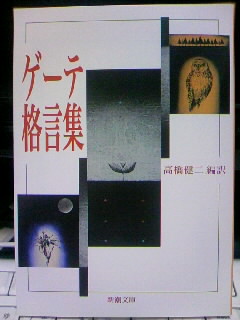 2009年11月3日 ゲーテ格言集 芳崎せいむさんの鞄図書館の鞄がやたらとゲーテの格言を引用するので気になって買ってきた。 鞄図書館の鞄さんのキャラクターは、何となくキノの旅のエルメスをちょっと思い出す。 旅の相棒だからだろうか…。