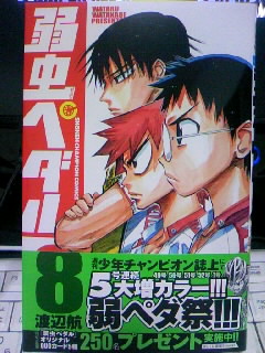 2009年11月5日 弱虫ペダル(8) 買ってきました。弱虫ペダル。くおー、またこんなところで終わって!っていうところで終わった。面白いね。 会社でチャリンコ乗りの同僚は、今週は出張なので貸すのは来週だな。
